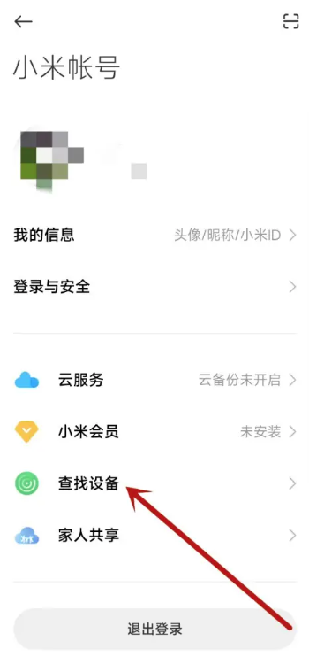 2.在账号页面,点击查找设备。