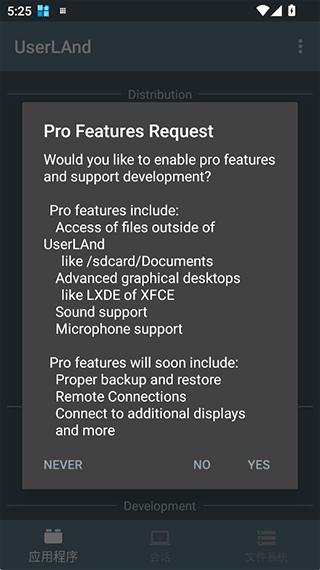 UserLAnd 是一款无需 root 权限即可在 Android 设备上运行 Linux 发行版(如 Ubuntu、Debian 和 Kali)的开源应用。它使您能够访问内置的终端或通过 VNC 连接获取图形界面,轻松使用常见的 Linux 应用,如 Octave 和 Firefox。UserLAnd 由 GNURoot Debian 的开发者创建并维护,提供简单的设置流程,允许用户通过几步操作安装并使用所选的 Linux 发行版或应用程序。它是一个理想的工具,适合学习 Linux 或在移动设备上进行开发。