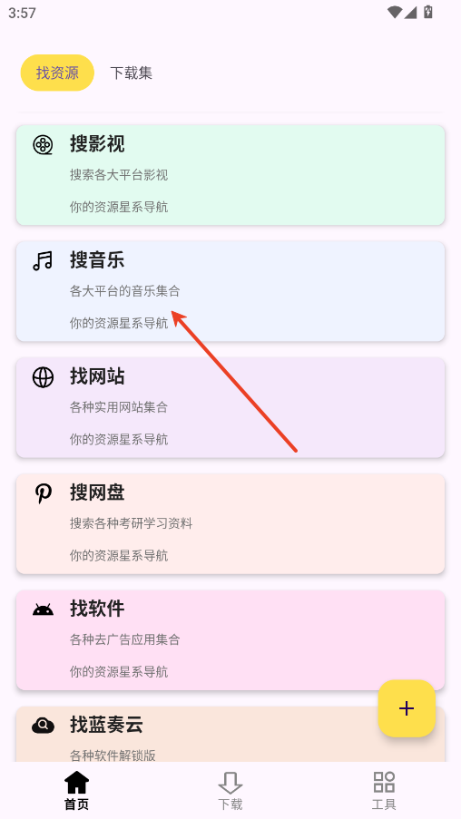 4.在首页点击搜音乐按钮。