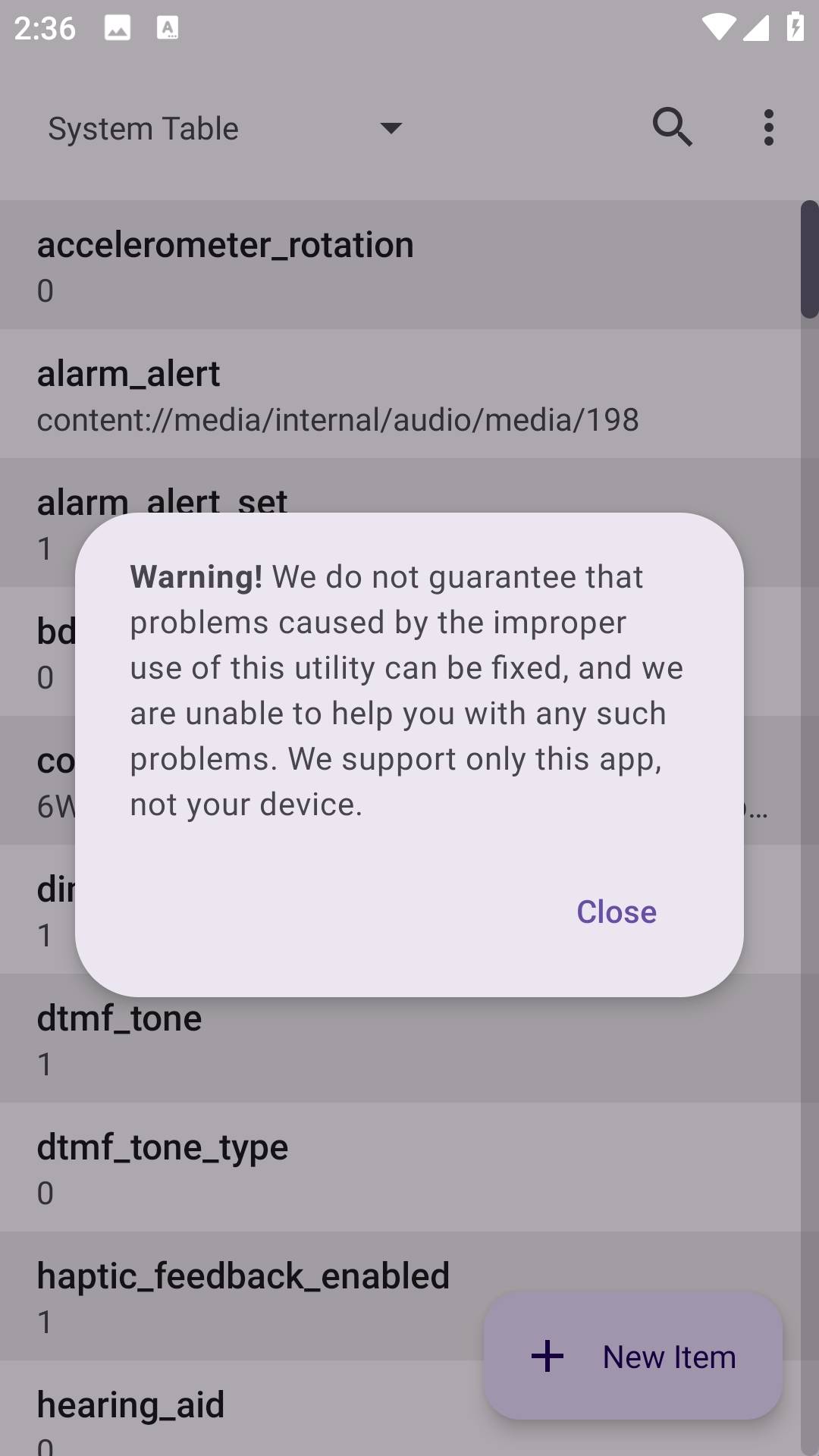 1、先安装SetEdit应用,安装完成后打开它进入主页,此时会出现弹窗,点击弹窗上的【close】按钮将其关闭;