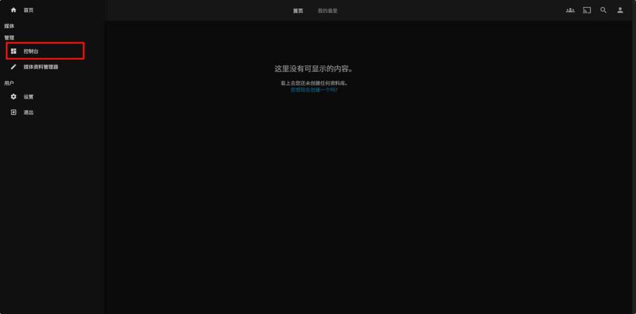 登录 Jellyfin 后,点击左上角菜单图标,选择“控制台”。