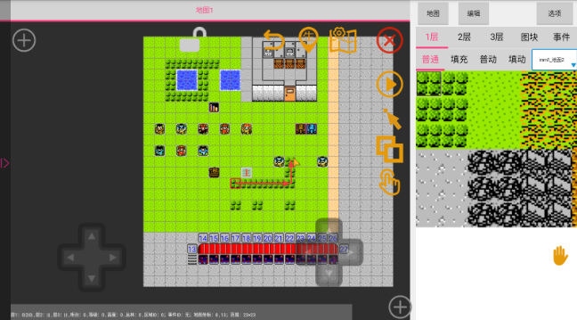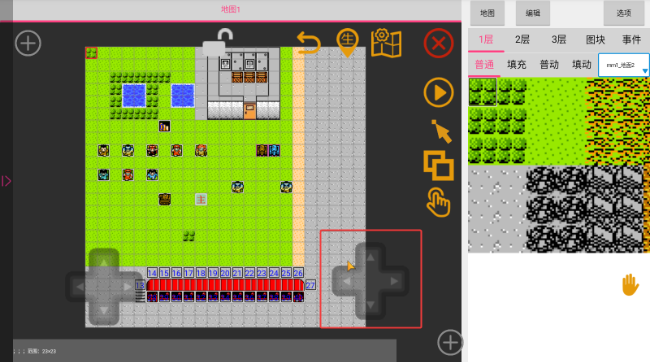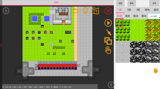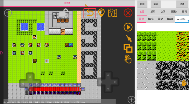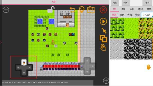 4、双指可以放大缩小,手指轻点地图图块可以选中,也可以使用左边的方向键精准选中某一个图块