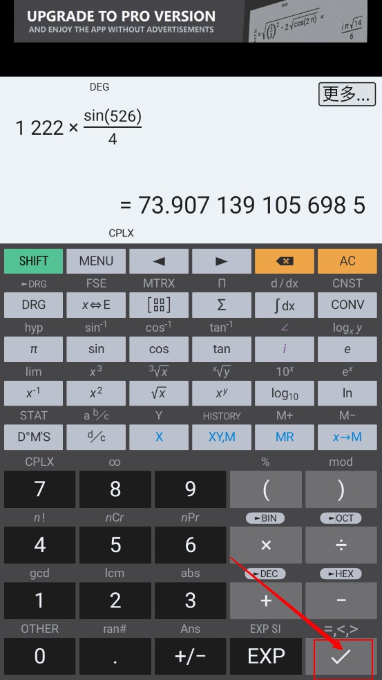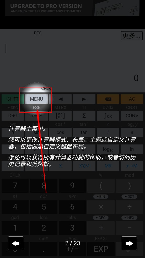 3、点击"MENU"主菜单,可以进行更改计算器的模式、布局、主题等。