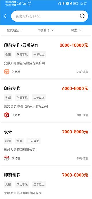 达达印刷人是一款专注于印刷行业垂直领域的人力资源服务平台,平台针对企业多样化的用人需求,不仅提供常态化年度人才补给计划,更能高效响应临时性、紧急性的技术与后道岗位招聘。对于求职者而言,平台提供全流程的求职辅助服务,从职位投递到状态跟踪均有实时通知,确保信息透明。