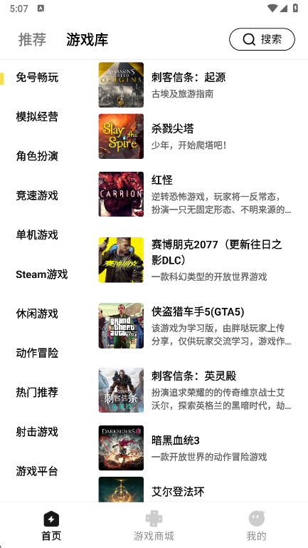 2、点击游戏库可以获取到众多的分类游戏,玩家可以在这里找到想玩的