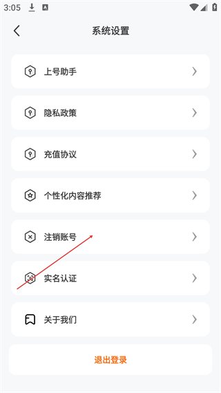 3、在系统设置界面中,点击“注销账号”选项,跳转至账号注销确认页面。