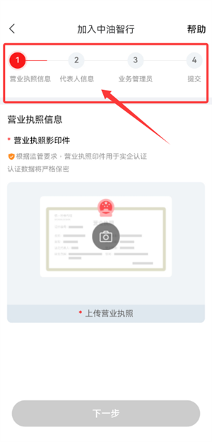 3.最后依序填写营业执照与代表人资料,提交后即完成申请流程。