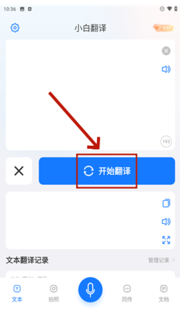 3.点击下方的“开始翻译”按键,即可立即查询想要翻译的内容。