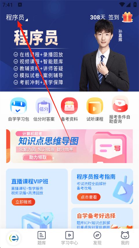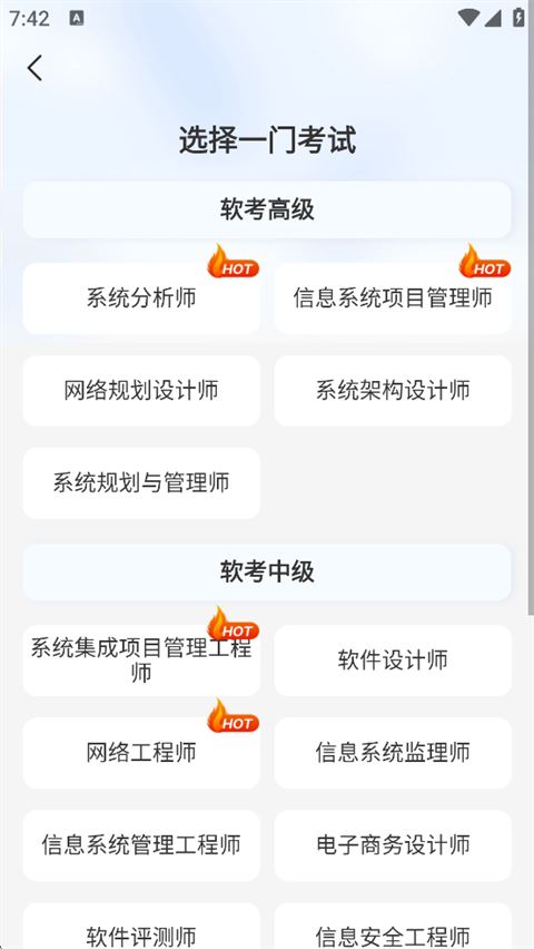2.于考试选择页面根据需求选取相应等级备考科目。