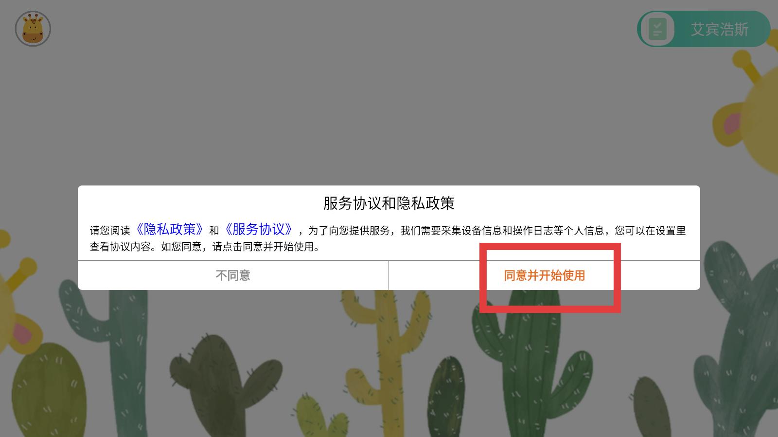1.进入软件之后,会跳出服务协议,需要认真阅读软件给出的建议后点击同意并继续下一步。