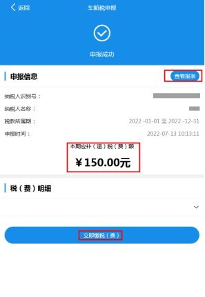 12.系统申报成功后,会跳转至缴税界面,再次确认本期应补(退)税额无误后,点击【立即缴税(费)】,在税费缴纳界面上选择支付方式,点击【立即支付】即可完成缴税。