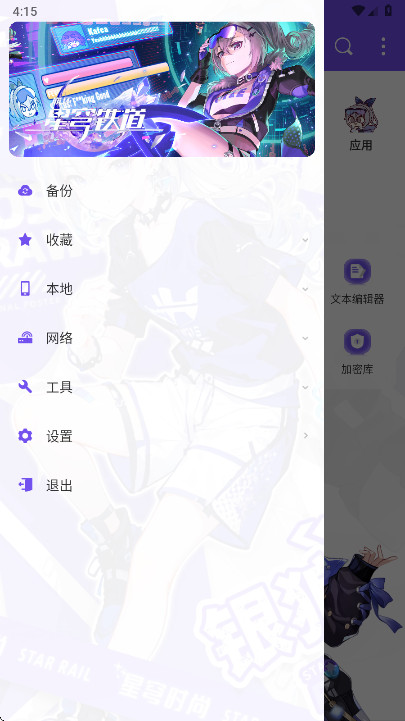 作为经典工具的华丽变身,ES管理器银狼版在功能上延续了老牌神器的强悍底蕴,堪称手机里的全能大管家。这款魔改版充满了崩坏星穹铁道中天才黑客银狼的酷炫元素,无论是本地存储的文档、图片、视频,还是藏在深处的系统文件,你都能像在电脑上一样进行复制、剪切、重命名和批量删除。更厉害的是它还是一个强大的跨界搬运工,不需要数据线,就能让你通过局域网共享、FTP或者蓝牙,在手机、电脑和电视之间飞速传输文件。对于喜欢折腾软件的朋友,它内置的应用管理和压缩包解压功能也非常好用,查看安装包、解压ZIP或RAR都是信手拈来。