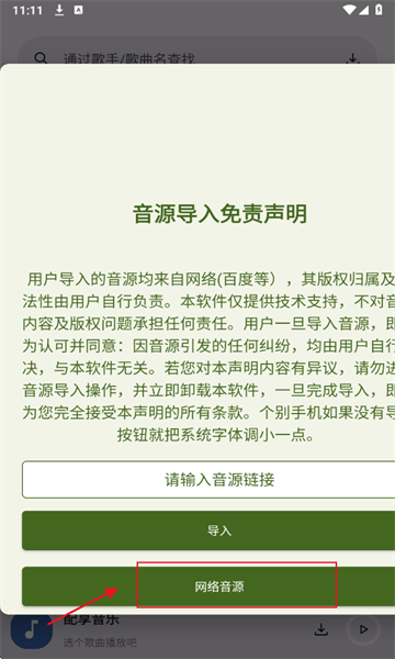 3、在音源输入框中输入音源链接,点击导入
