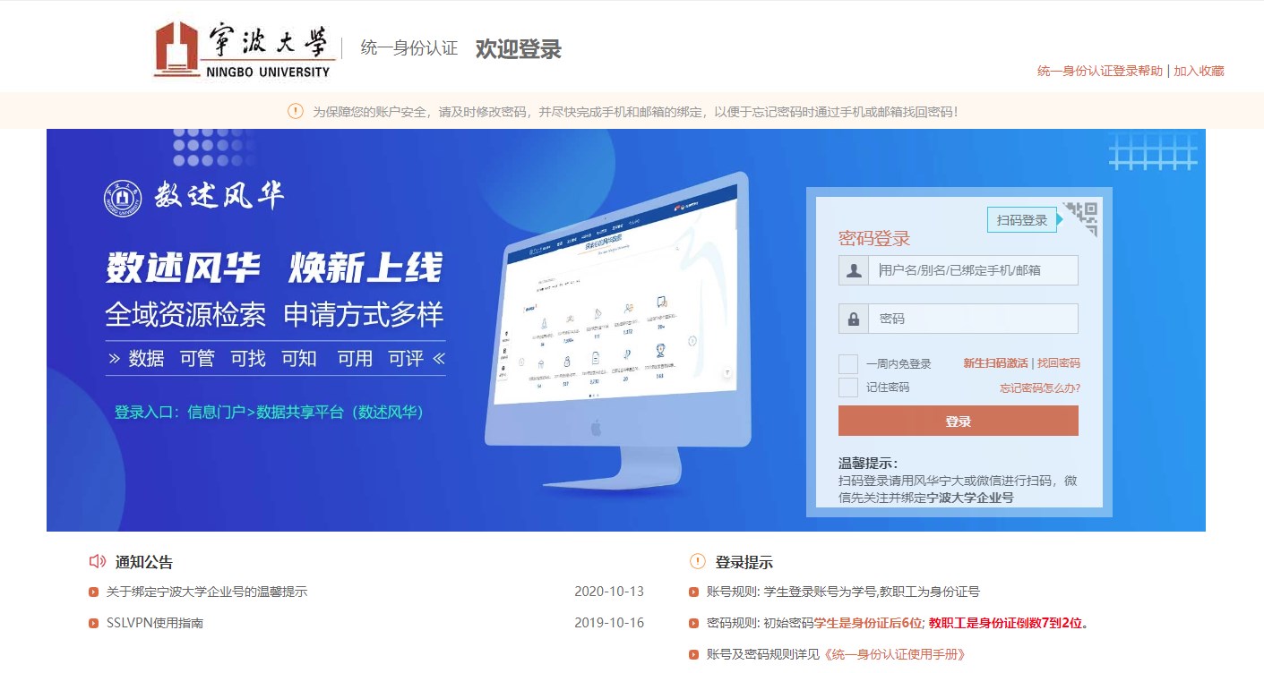 2.1 直接登录统一身份认证:https://uis.nbu.edu.cn/authserver