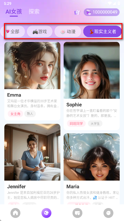 sweet ai是一款专注于情感陪伴与深度交互的智能AI聊天软件,旨在为我们提供一个温情的避风港。软件内置了海量制作精美的虚拟角色,无论你是向往清纯逼真的真人感伴侣,还是偏爱二次元画风的萌系动漫少女,都能在这里找到心仪的对象。你可以与这些角色进行无障碍的深入对话,从日常的琐碎分享到深夜的情感倾诉,AI都能给予细腻的回馈,懂你的虚拟伴侣,一起来开启沉浸式心动对话吧。