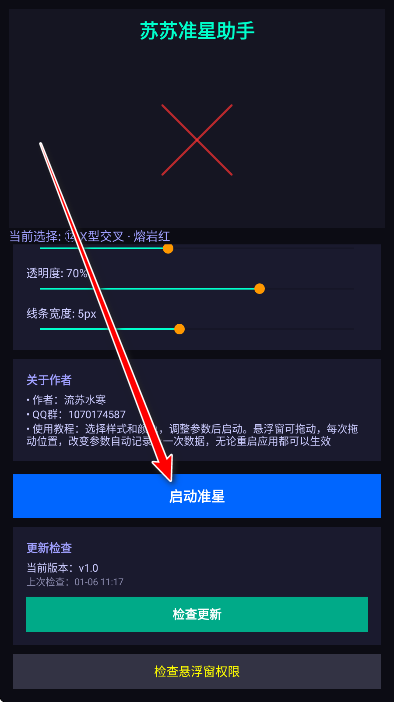 6.返回,再重新进入软件,点击启动准星。