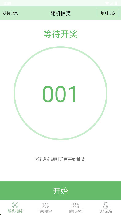 1、请在本站下载安装好抽奖点名器app,进入到软件主页面,选择规则设定;