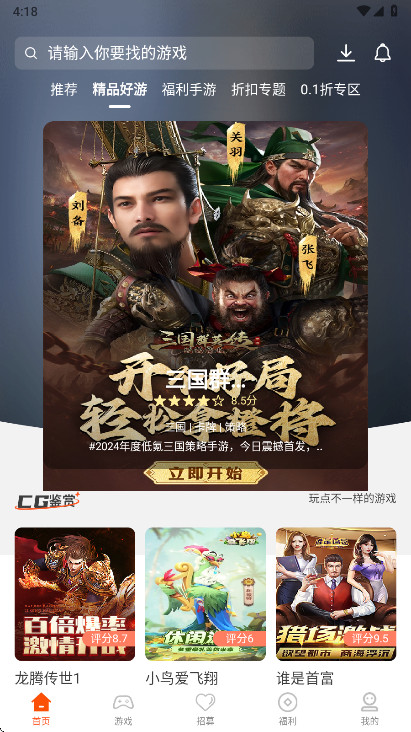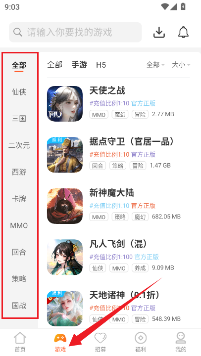 4、而在【游戏】界面中则是有各种类型的游戏分类,并排好了顺序,