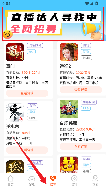 5、如果你有才艺或者你喜欢直播,可以参与招募成为直播达人,如图所示。