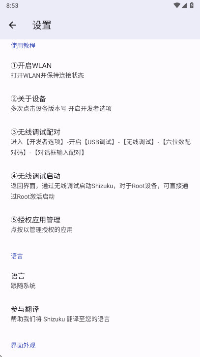 1、安卓10以上系统可以打开无线调试功能,然后输入配对码即可连接,其与Shizuku的激活使用一样