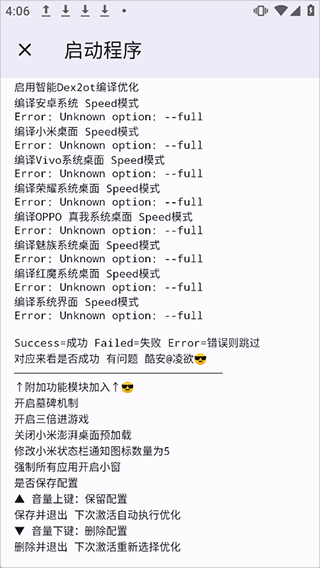 4、然后优化完成后只要不出现失败就可以乾保留配置,错误的信息可以跳过