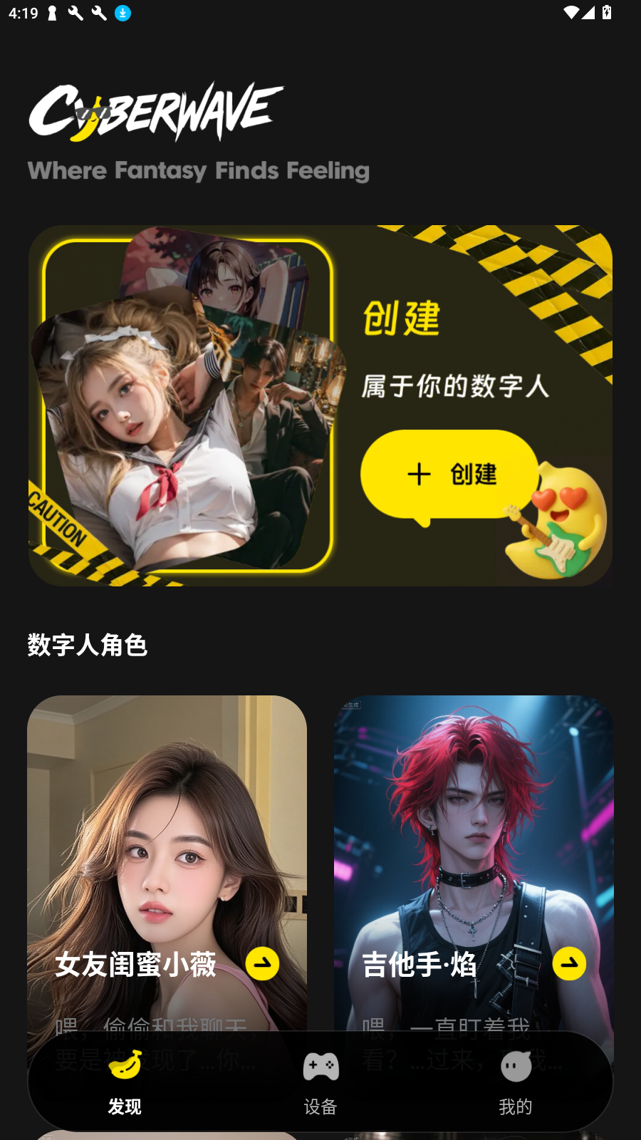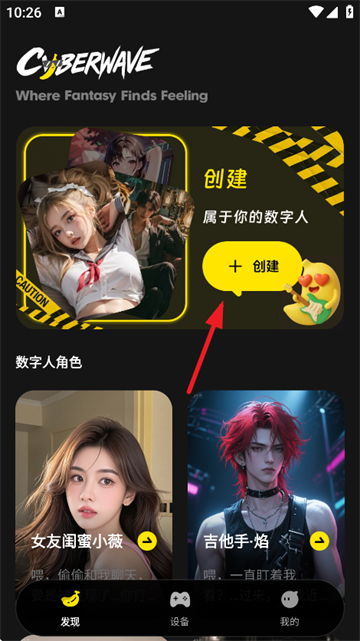 3、在发现页面,可以看到超多不同类型的AI角色,还可以点击上方创建专属数字人。