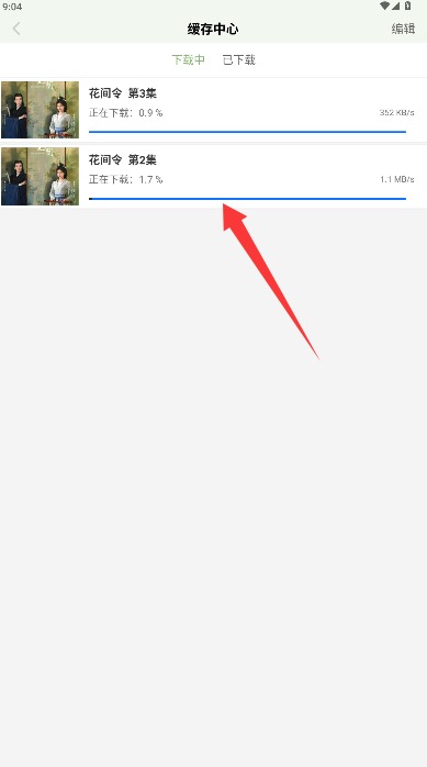 4.在下载管理主中心可实时查看缓存进度状态,管理已下载完成和正在下载的视频。