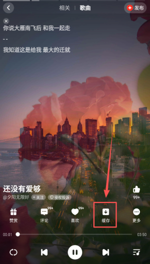 1、找到心仪歌曲,点击它,歌曲右侧“缓存”按钮显现,轻点即可开启免费下载。