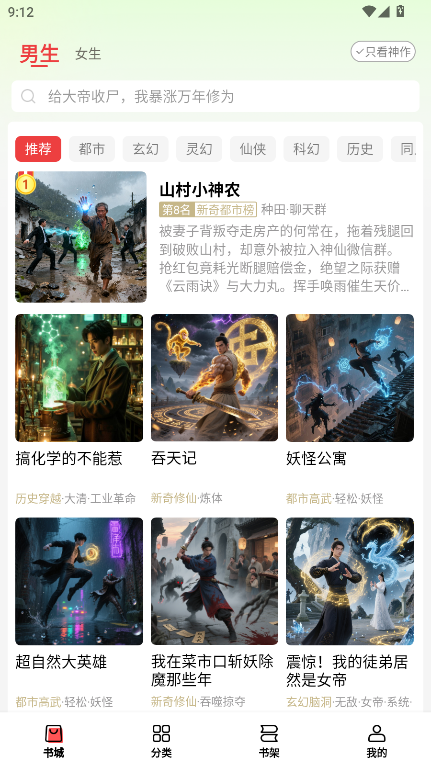 2、接下来我们可以通过书架功能来查看自己收藏的所有小说资源,然后选择自己喜欢的小说进行阅读。