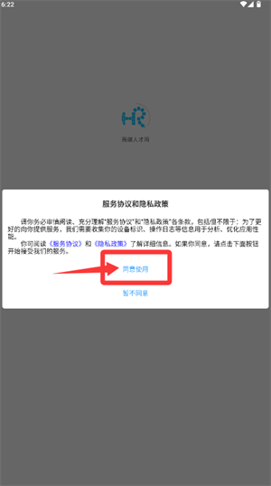 1.首先在服务协议弹窗中点击同意使用,确认接受相关条款内容。