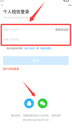2.随后选择短信验证或第三方账号登录,完成账户安全验证流程。