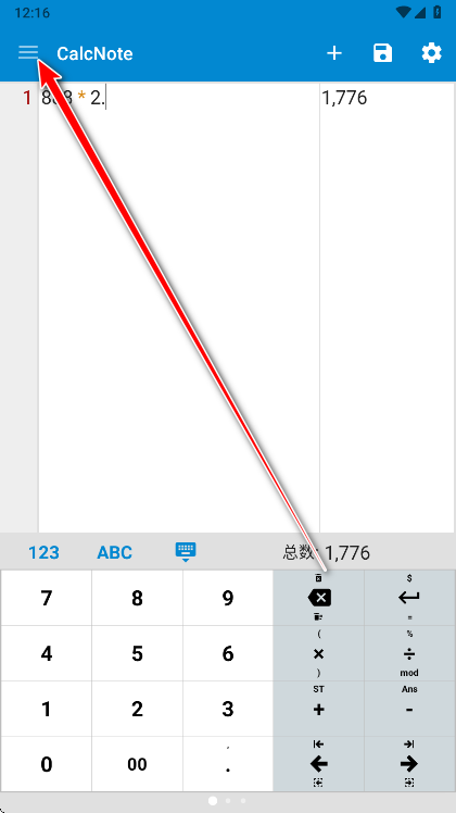 1.打开CalcNote,根据自己的需求输入自己需要计算的数字。