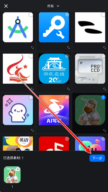 3.点击我们想要编辑的照片,然后点击下一步。