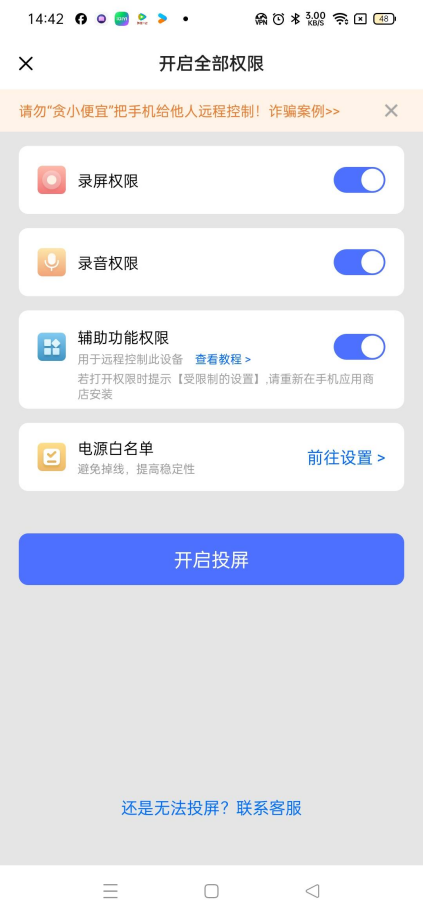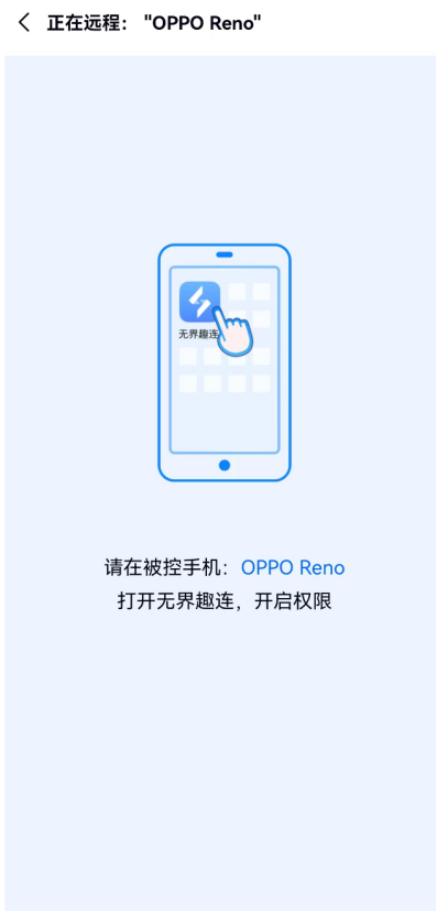 4.点进去之后,根据提示,在被控手机上打开无界趣连app,开启权限就可以了