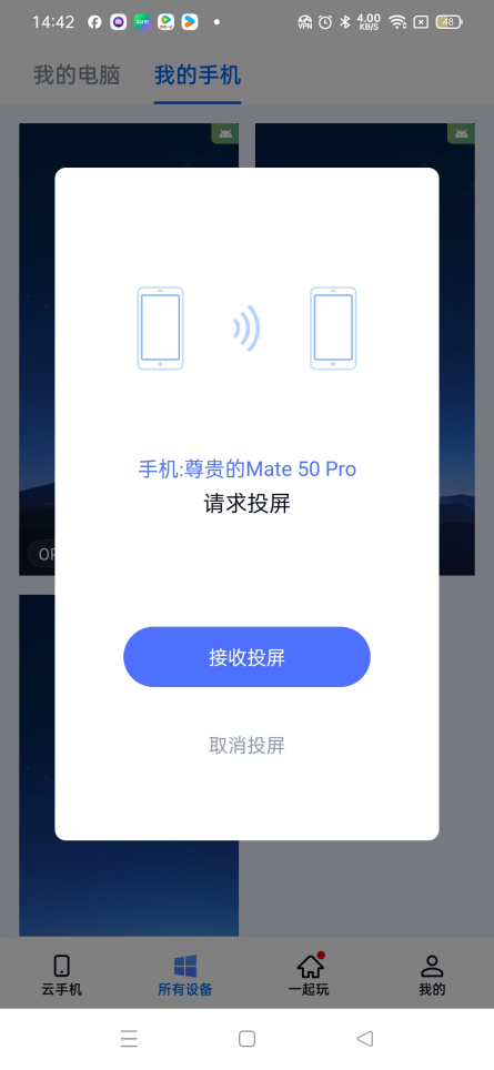 最后,点击开启投屏,就可以愉快的手机远程另外一台手机了