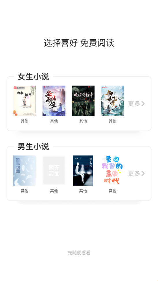 1、在本站下载并打开软件,可以看到男频、女频选项;