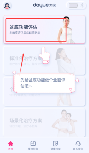 大悦盆底肌是一款专注于女性盆底健康管理的智能康复产品,通过专业评估与个性化训练方案,帮助用户科学改善盆底功能。产品结合现代医学指导与居家便捷性,为女性提供系统化的私密健康护理支持。基于评估结果,系统会提供标准化的治疗方案,涵盖盆底肌保养、治疗及阴道松弛症改善等多种需求,帮助提升女性性功能,让用户在家中即可轻松完成康复过程。