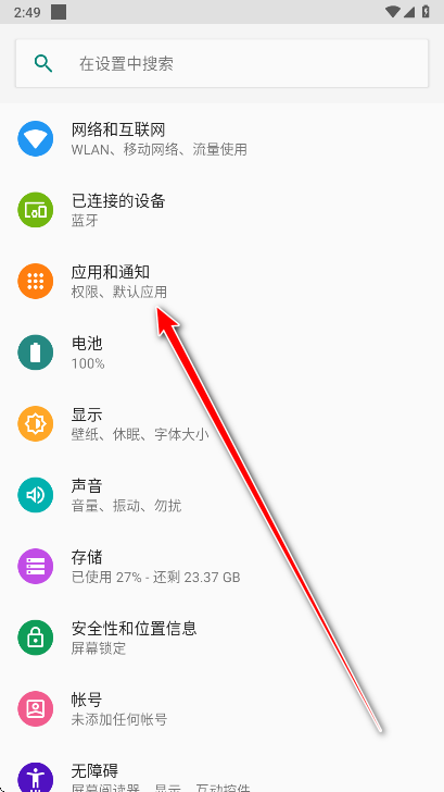 2.点击应用和通知。