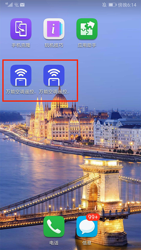 2、这样就可以查看当前手机中所有的应用,并且选择需要的应用进行分身,这里以【万能空调遥控器】为例