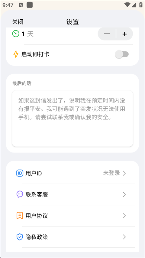4、用户可设置打卡周期,并在下方【最后的话】中写下求助的话。