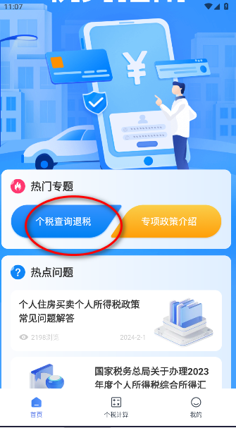 2.进去了之后你可以直接的点击下图的个税查询退税。