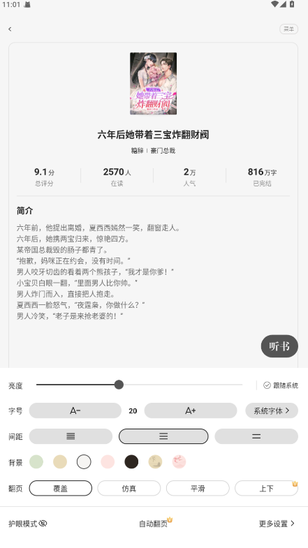 6.根据个人喜好调整字体大小、背景颜色、亮度等,选择合适的阅读模式(夜间模式、护眼模式等)。