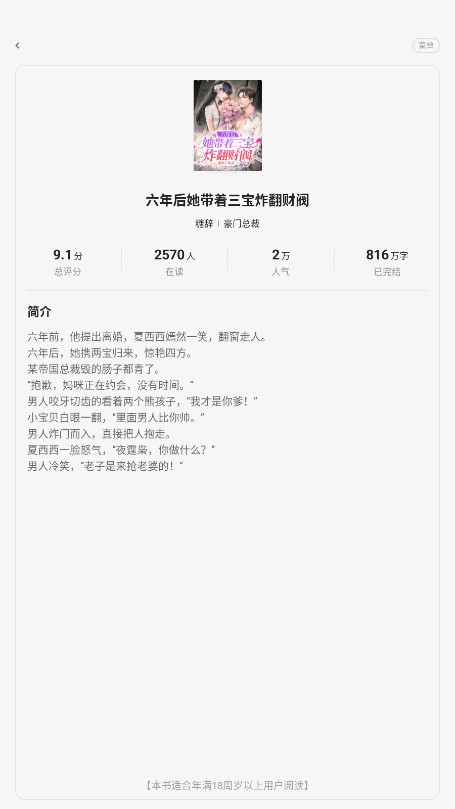 3.进入小说详情页,右滑,开始阅读该小说的内容。