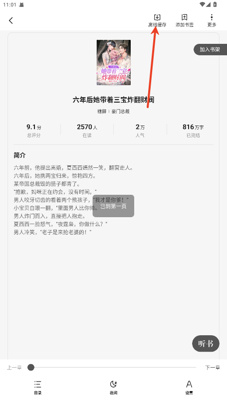 5.在网络不稳定时,可以选择离线下载章节,在没有网络的情况下也能继续阅读。