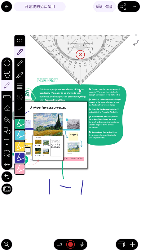 Explain Everything安卓版,是一款专为教学演示、灵感记录设计的交互式画板工具,让静态内容焕发动态活力。支持实时创建动态笔记,轻松导入PDF、图像等文档进行精准标注与编辑,搭配图像、便签、方程式、超链接等多元插入功能,让知识点呈现更丰富直观。内置完整创意工具与录制功能,可导出长达60秒的演示视频,便于分享复盘。免费版提供200MB云端存储空间,支持最多创建3个项目(每个项目限1张幻灯片),同时支持多人在线协作标注。