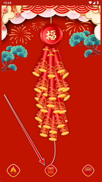 2、页面底部中间的小房子图标可以选择鞭炮种类