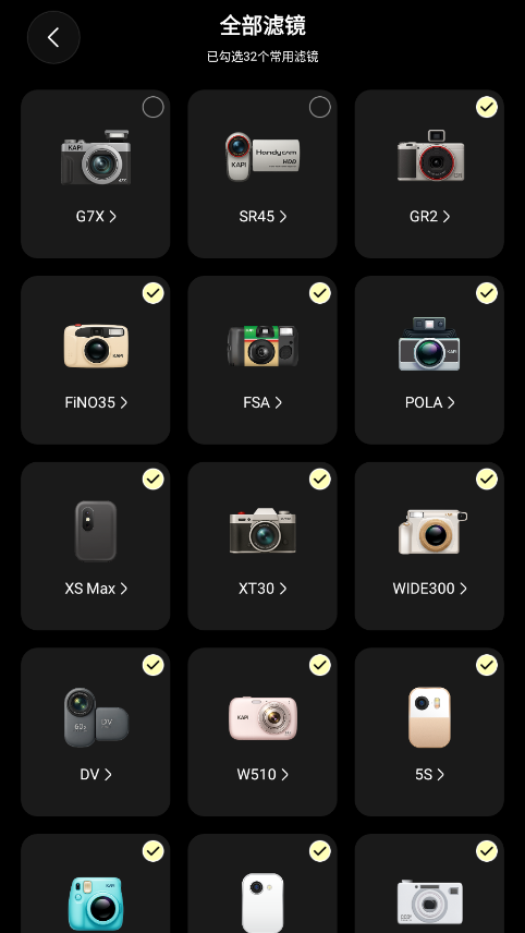 3、点开相机滤镜以后,有着超多免费滤镜内容等你来进行选择,拍照超级方便