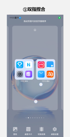在桌面使用双指向内捏合手势,进入桌面编辑模式。
