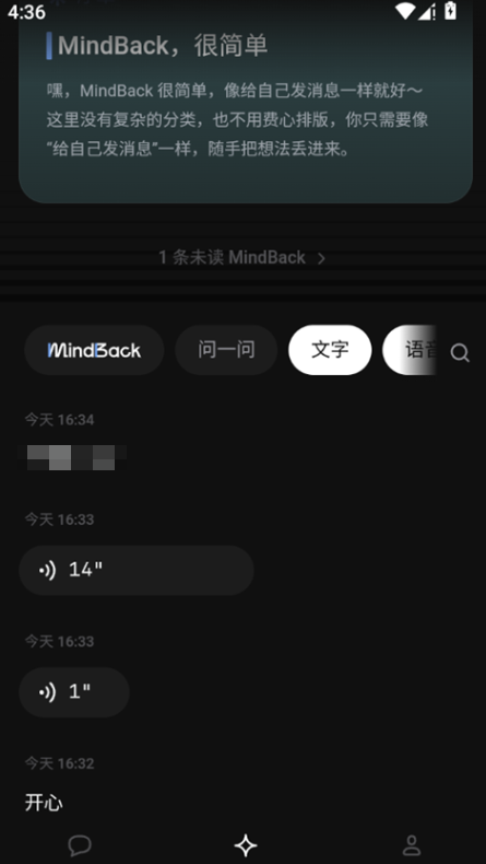 4、长按任意一条记录,就能唤起MindBack,随时问一问。