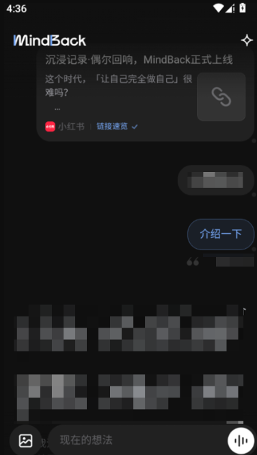 3、在其他App(如小红书、公众号、大众点评、知乎、小宇宙、B站)看到好内容?直接通过"系统分享"投递给MindBack,顺便附上你的随想,MindBack会自动生成链接解析,让收藏不再是单纯的堆积,而是知识的即刻消化。